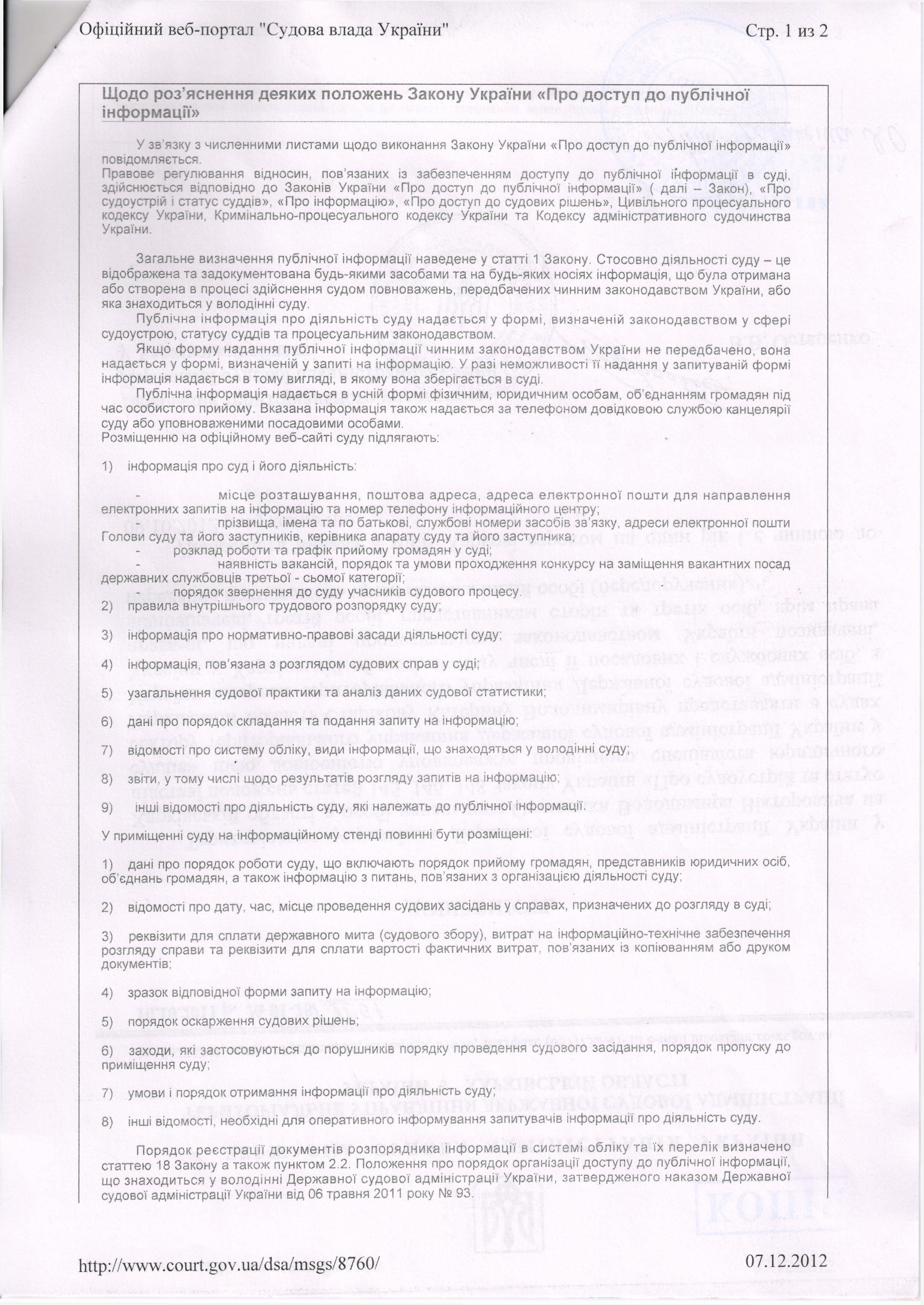 Щодо роз'яснення деяких положень Закону України "Про доступ до публіної інформації"